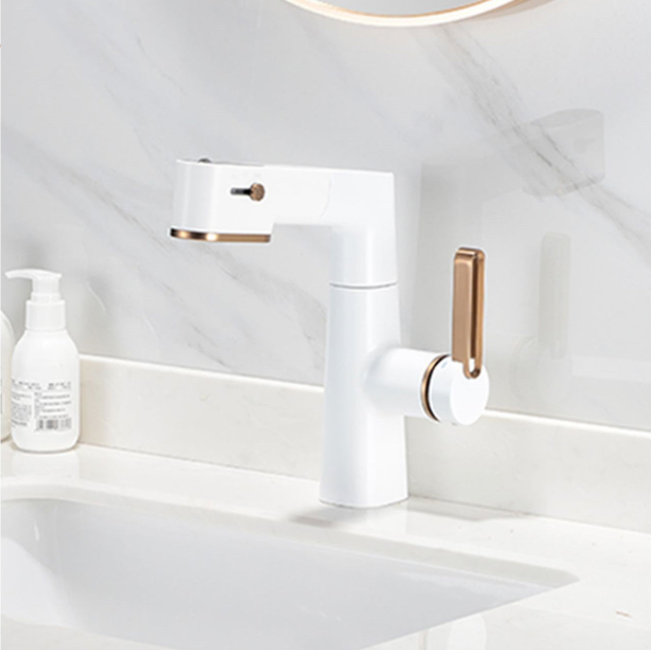 The faucet offers three water outlet modes that can be easily switched for convenient washing. With a gentle push of the faucet button, you can switch between a water column mode with soft and rich foaming water, a shower mode with stronger water pressure for easier hair washing, and an upward flow mode for convenient mouth rinsing.